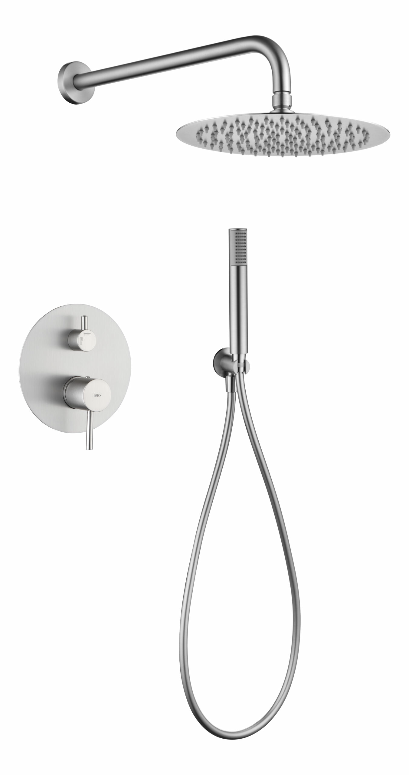 Смеситель для душа скрытого монтажа готовый комплект верхний душ ø25cм imex monza gpm039/nq brushed nickel