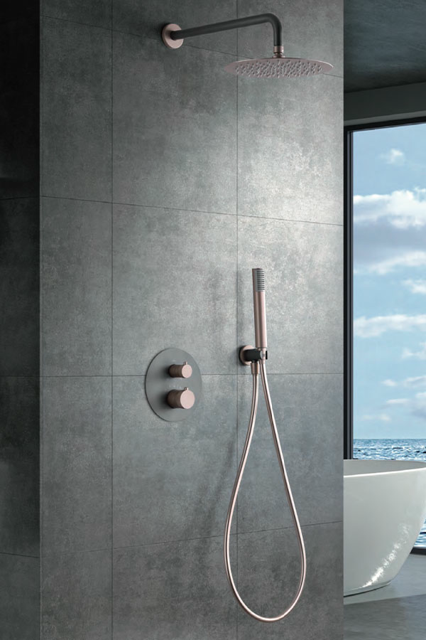 Смеситель для душа термостатический скрытого монтажа готовый комплект верхний душ ø25cm imex line gtd038/gc matt gray/champagne